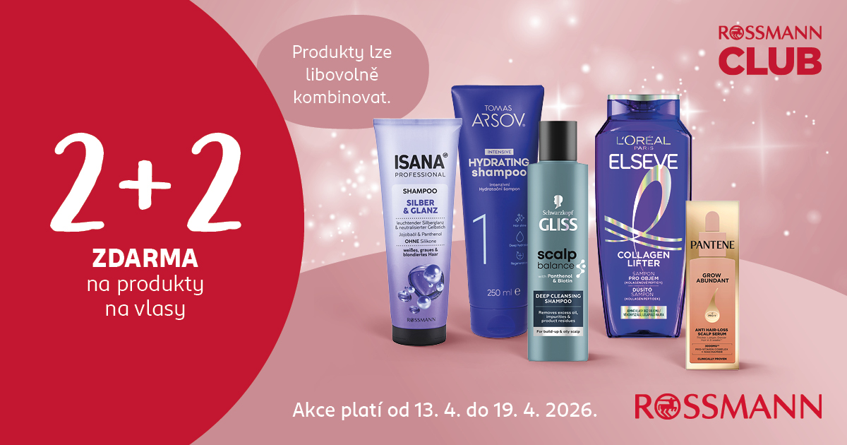 Zastavte se v drogerii Rossmann OC HANÁ, kde pro vás máme 2+2 ZDARMA na produkty na vlasy. Stačí si vybrat, protože produkty můžete libovolně kombinovat.