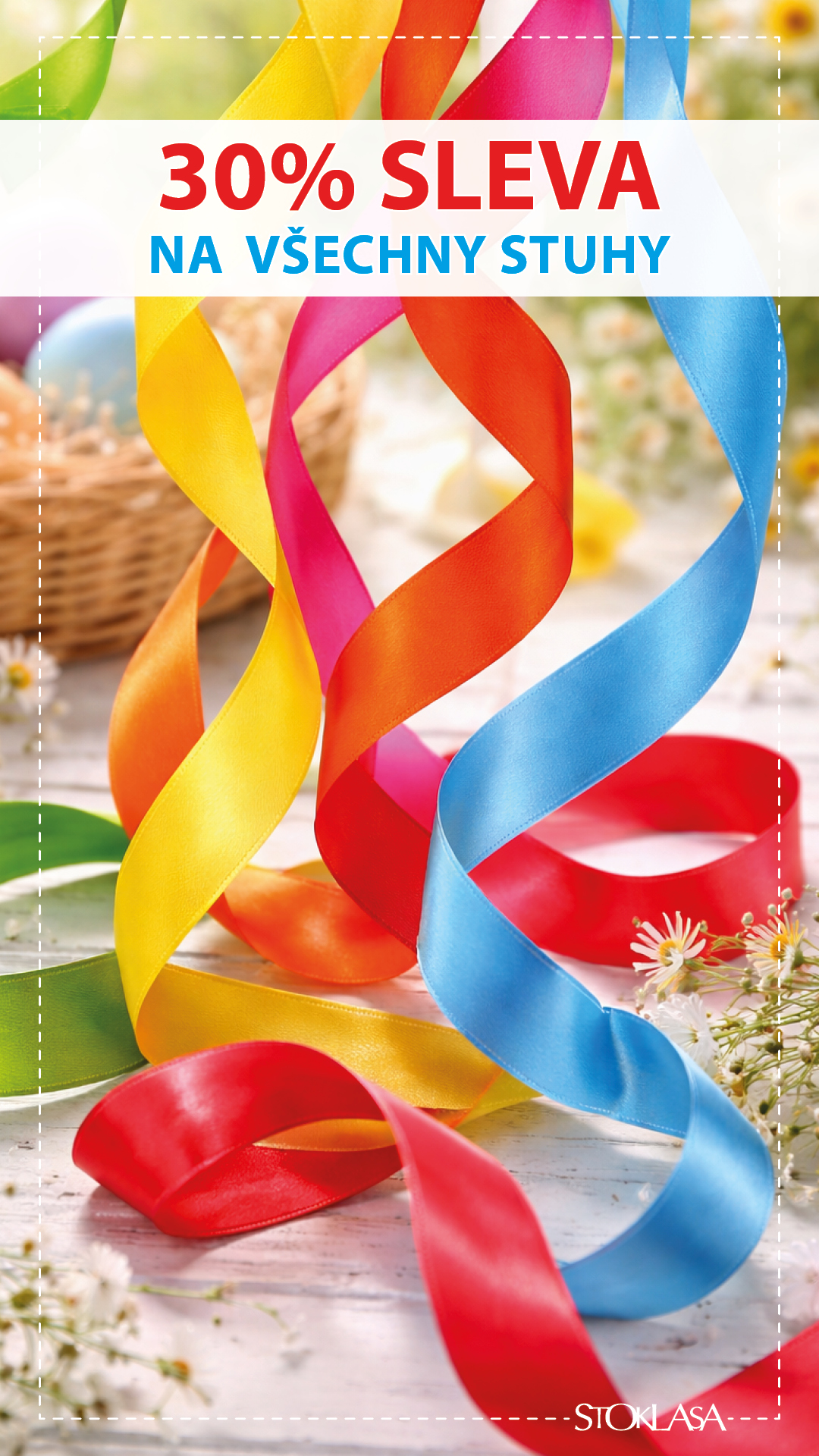 Celý březen pro vás máme 30% slevu na všechny stuhy. Stačí se zastavit v prodejně Stoklasa OC HANÁ.