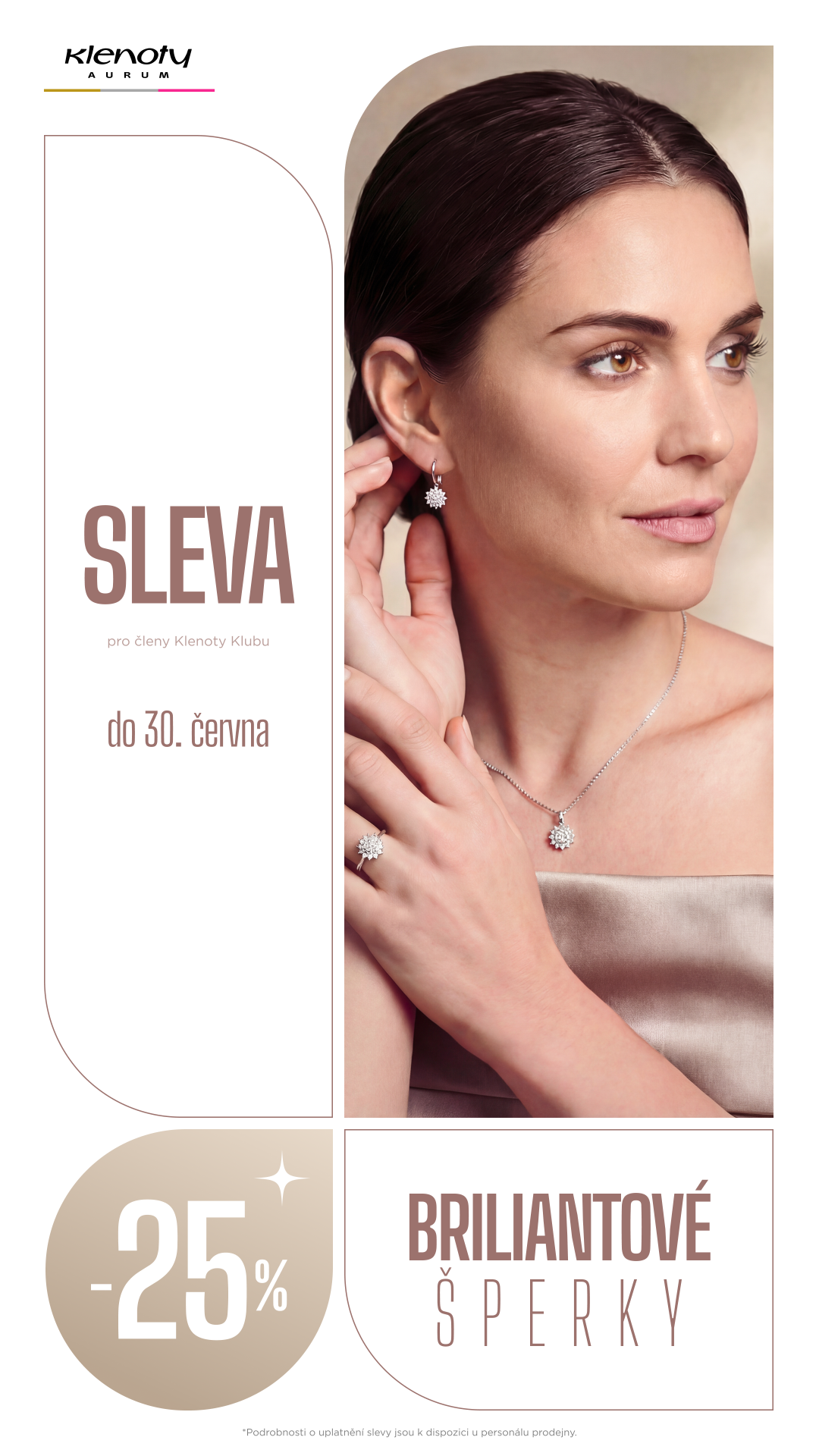 Až do 30. 6. 2026 mají členové Klenoty Klubu možnost zazářit se slevou 25 % na brilianty*.
